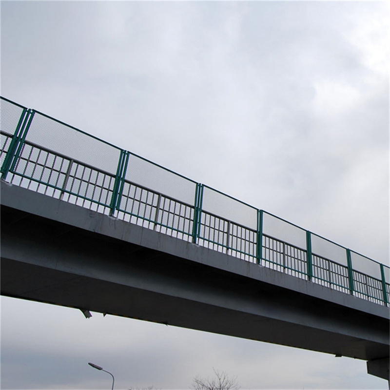 高架橋防拋網(又名橋梁防護網、橋梁護欄網)是由優質低碳鋼絲經過拉拔、編織、焊接、浸塑等一系列工藝加工而成,它廣泛用于市政高