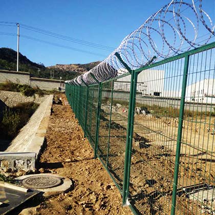 監獄防攀爬網又稱Y型安全防御護網,用V型支架立拄,加強型焊接片網,安全防盜連接件和熱鍍鋅刀片刺籠組成強度和安全防御性級別很高.近