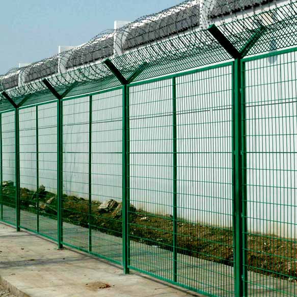 防護設施,產品采用高強度的鋼筋焊接網與頂部尖銳的蛇腹型刀片刺網緊密結合,構成一道強大的安全屏障。