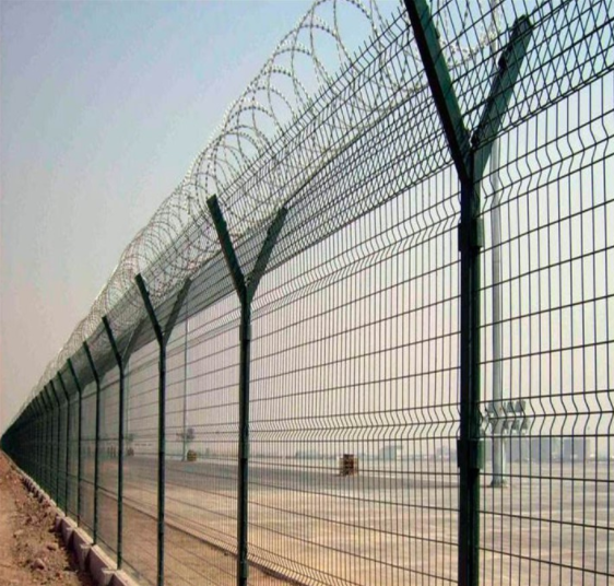 監(jiān)獄護(hù)欄網(wǎng)又稱作“Y型安全防御護(hù)網(wǎng)”, 是由V型支架立柱,加強(qiáng)型焊接片網(wǎng),安全防盜連接件和熱鍍鋅刀片刺籠組成強(qiáng)度和安全防御