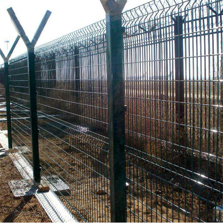 機場鋼筋網圍界標準,圍界網片及V型網的網孔其相鄰橫絲間距不得大于10cm,豎絲間距不得大于5cm,機場圍界網片與立柱之間的縫隙不得大于2cm,網片離地間距不得大于2cm。焊接圍界網片的鋼絲直徑必須大于等于5mm。機場圍界的立柱應采用60*60mm方管制成,管壁厚度不得低于2mm,立柱及網片的表面防腐年限不能低于8年。