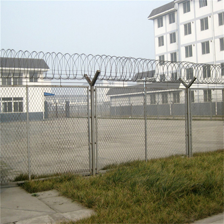 監(jiān)獄金屬隔離網(wǎng)的規(guī)格一般比其它金屬護(hù)欄網(wǎng)的要求更高,是一種新型防護(hù)網(wǎng)是由安全立柱(頂部可帶V型),由銳利尖角鍍鋅鋼板或不銹鋼薄板做刀片,鋼絲做芯線組合而成的防護(hù)器材,該產(chǎn)品具有嚇阻、防翻越等效果,材質(zhì)堅(jiān)硬,高強(qiáng)度,高張力,造型設(shè)計(jì)獨(dú)特,不宜觸摸,因而能達(dá)到極好的防護(hù)隔離效果。是由安全立柱(頂部可帶V型)。