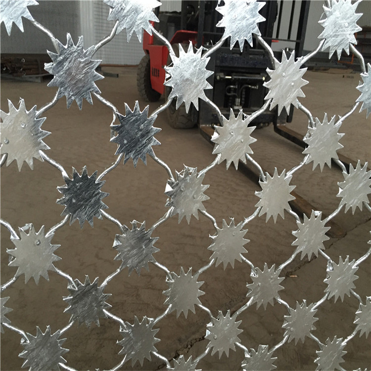看守所圍網是一種新型安全防護網,由蛇腹式刀刺網,鋼絲焊接的網片和安全立柱組成。看守所圍網可平地安裝,也可在圍墻上二次安裝,有效防止攀逃。主要用于監獄、看守所等特殊地帶、軍事基地圈護、溝壕圈護等,安裝簡易,經濟使用壽命長。