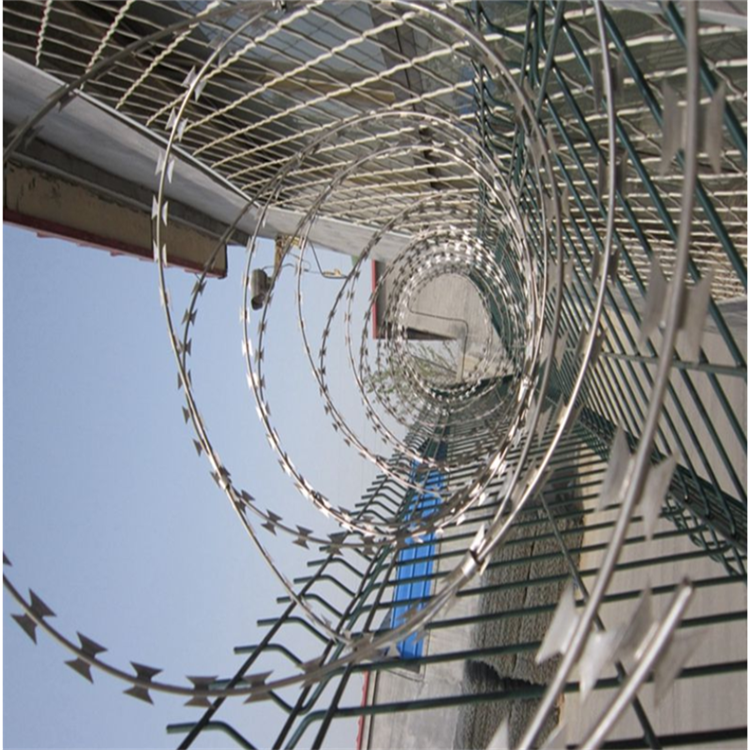 不銹鋼刀片刺網的用途:世界各國已將刀片剌網廣泛用于軍事重地、監獄、政府機關、銀行,以及生活小區圍墻、私人住宅、別墅的圍墻、門窗、高速公路、鐵路護欄以及邊境線等用來防護保安。中國監獄基本上用的都是刀片刺網