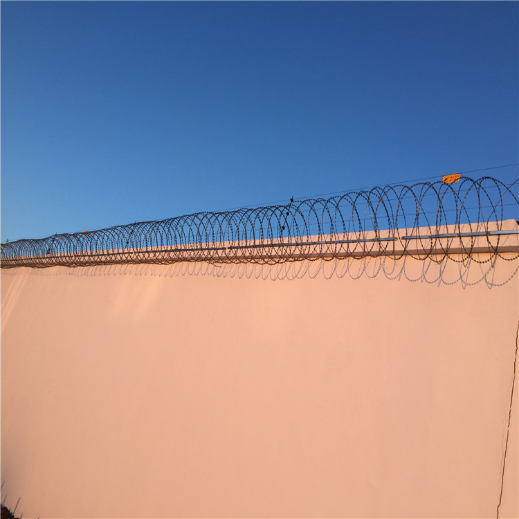 蛇腹形刀刺網施工主要包括以下內容:清理場地確認硬化程度可直接安裝支架底盤、安裝支架、拉線布置、蛇腹形刀刺網安裝。
