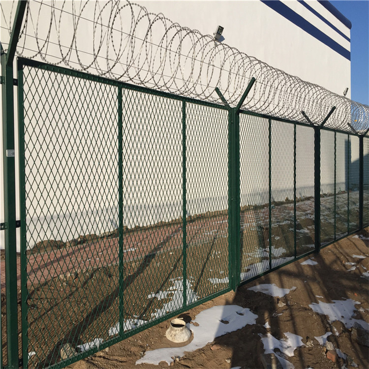 監獄隔離網墻又稱監獄隔離柵或監獄防護網,主要是采用高強度的刀片刺網與普通防護網的結合,由V型支架立拄,加強型焊接片網,安全防盜連接件和刀片刺網組成.刀片刺網是一種新型防護網,由銳利尖角鍍鋅鋼板或不銹鋼薄板做刀片,鋼絲做芯線組合而成的防護器材。