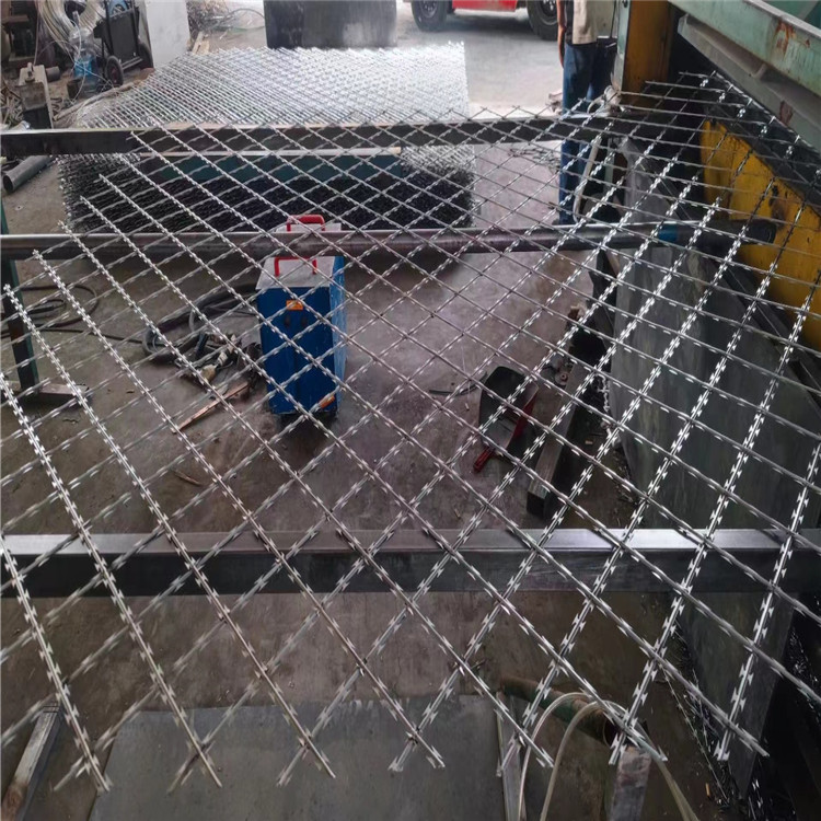 主要是由熱鍍鋅鋼板或不銹鋼薄板沖壓而成的,它擁有尖銳的刀片,高張力鍍鋅鋼絲或者不銹鋼絲做芯線組合而成的產品。由于刺網的形狀很特別,而且每個角度都有尖狀刀片,因而能達到極好的防御保護效果。產品具有結構新穎、堅固緊密、網面平整、網孔均勻、刀鋒銳利、防攀爬、抗腐蝕性強等特點。建設于監獄的內外墻地面及高墻之上,網墻內側或頂部加裝蛇腹形刀刺網,形成一道高不可攀、難以逾越的隔離障礙。