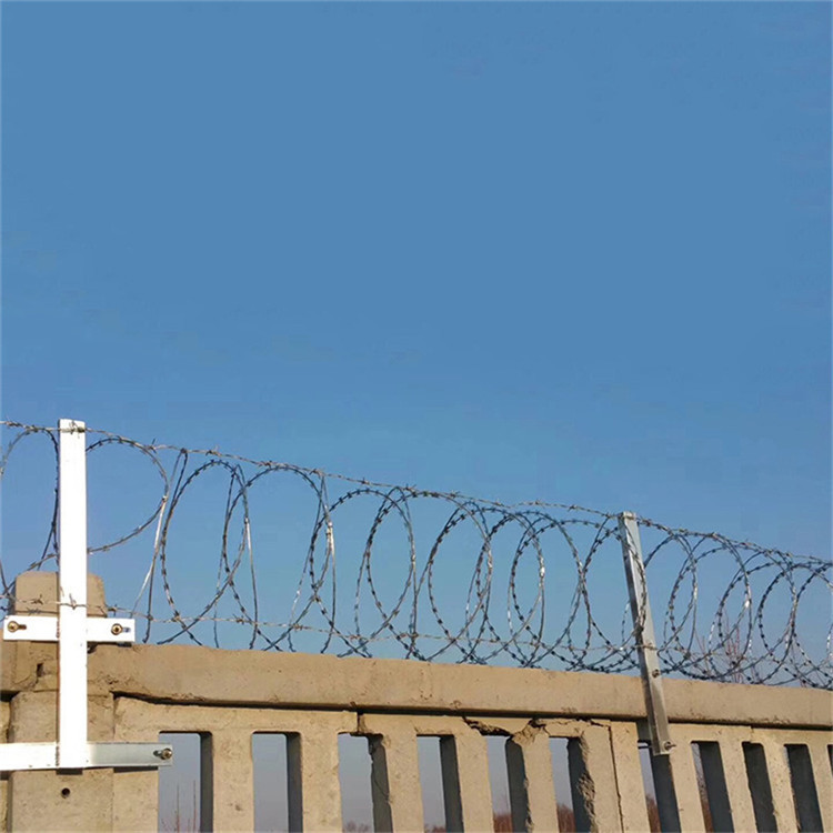螺旋圈狀刀刺網主要利用其獨特的形狀和材料特性來阻止罪犯的入侵和逃脫。這種刀刺網通常由高強度材料制成,如不銹鋼、高強度聚合物等,具有極高的抗拉性能和刀片般的銳利邊緣。當罪犯接觸到刀刺網時,其銳利的邊緣會對其造成嚴重的切割傷害,使得罪犯不敢輕易攀爬或穿透