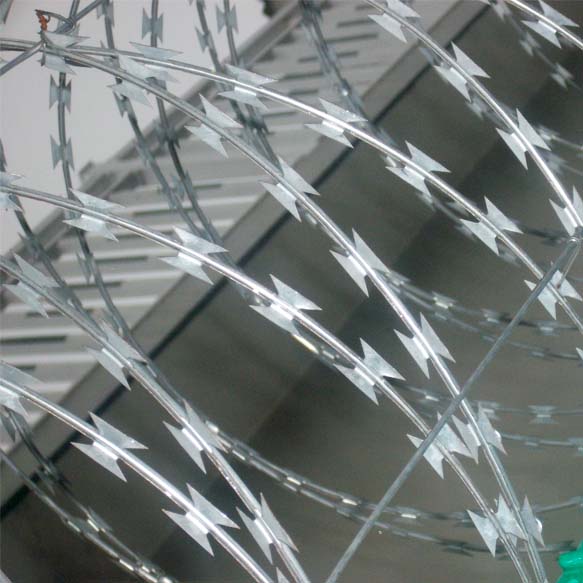 監獄防逃脫隔離網[防爬網]又稱作監獄安全防御網,監獄防逃脫隔離網的刀片刺網主要是由:熱鍍鋅鋼板或不銹鋼薄板沖壓而成的,它是擁有尖銳的刀片,高張力鍍鋅鋼絲或者不銹鋼絲做芯線組合而成的產品。由于刺網的形狀很特別,而且每個角度都有尖狀刀片,因而能達到極好的防御保護效果。產品具有結構新穎、堅固緊密、網面平整、網孔均勻、刀鋒銳利、防攀爬、抗腐蝕性強等特點。建設于監獄的內外墻地面及高墻之上,網墻內側或頂部加裝蛇腹形刀刺網,形成一道高不可攀、難以逾越的隔離障礙。